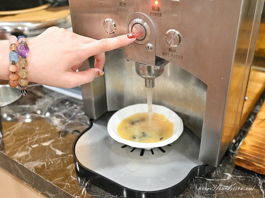 這裡的味噌湯好特別,不是煮一大鍋讓大家盛裝,而是有點像咖啡機用按按鈕的方式,只要按一顆鍵味噌湯就完成啦,旁邊還有海帶可以自行添加,提醒大家海帶遇熱會膨脹,建議不要一次裝太多唷
