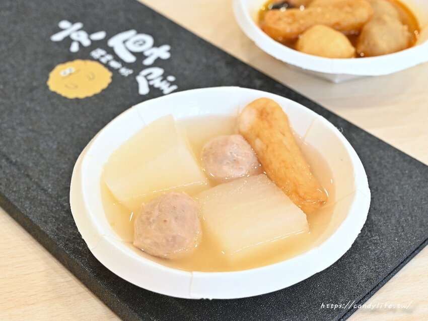 麻辣燙跟關東煮的食材有些許不同,麻辣燙裡頭有貢丸、魚丸、魚板及甜不辣,湯頭喝起來是微辣風味,關東煮的料有貢丸、甜不辣跟蘿蔔,湯頭喝起來相當清甜