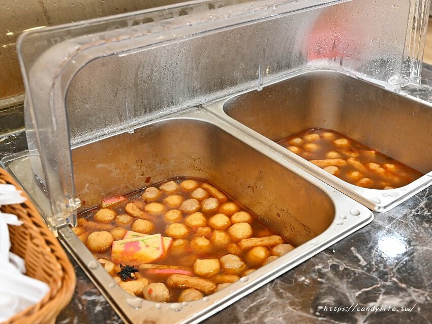 京厚屋的後方是自助吧區,等待餐點上桌時可以先來享用京厚屋自助吧提供的熟食,有關東煮、麻辣燙、味噌湯等可以自行取用