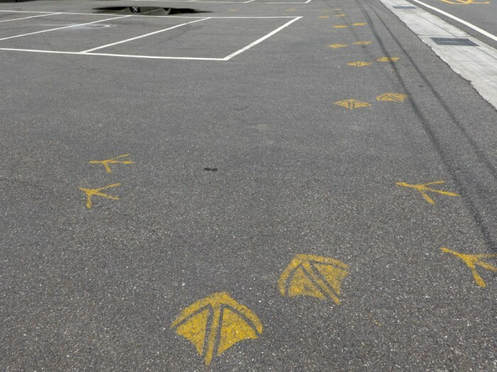 餐廳一旁設有停車場,來到這裡相當的方便,停好車好順著這些可愛的雞鴨腳掌示意路線,跟著走約1~2分鐘就能看到餐廳入口囉。