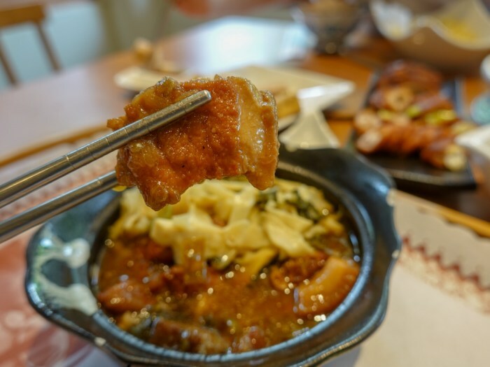 「酥炸大腸」及「酥炸豆腐」,外酥內嫩沾上一些胡椒鹽,其實我最喜歡桌菜的胡椒鹽,味道與一般吃到的鹹酥雞口味不太一樣,味道更重更有味。
