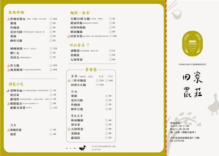 - 地址:台中市南屯區楓樹里樂田巷2-34號(導航請搜尋田寮農莊)