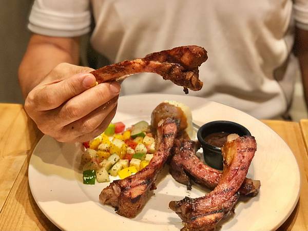 不用擔心烤得太乾水分都散失掉,吃起來相當嫩又多汁的豬肋排一口接一口