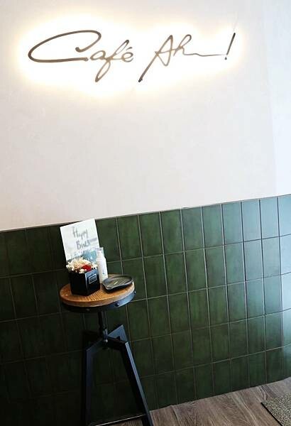 店內隨處可見的LOGO-「Ah~」,意指~「啊~_(自填)____」,我會說:「Ah~在這裡發現好喝的咖啡、美味的餐點、可口的甜點!」