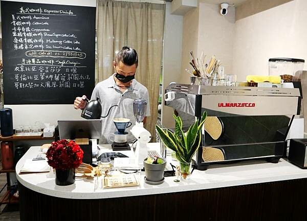 老闆身後的手寫板是店內推薦的招牌必點咖啡