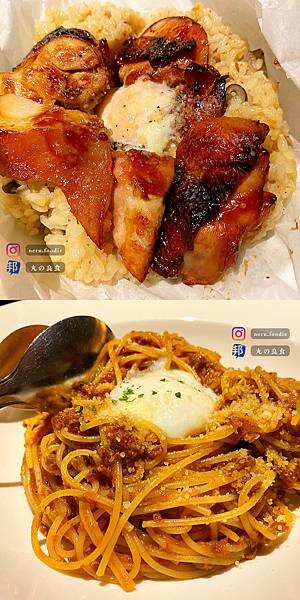紙包野菇烤雞起司燉飯 $340|義式經典肉醬起司麵 $250|紐奧良風炭烤豬肋排麵 $270