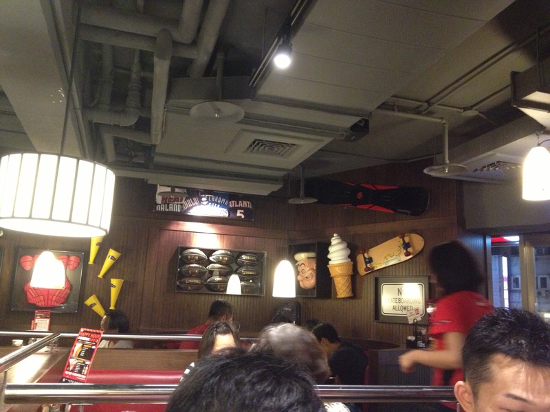 店內裝潢很美式(廢話~),有懷舊卡通-大力水手、辛普森...,又有運動風格-球衣球棒...