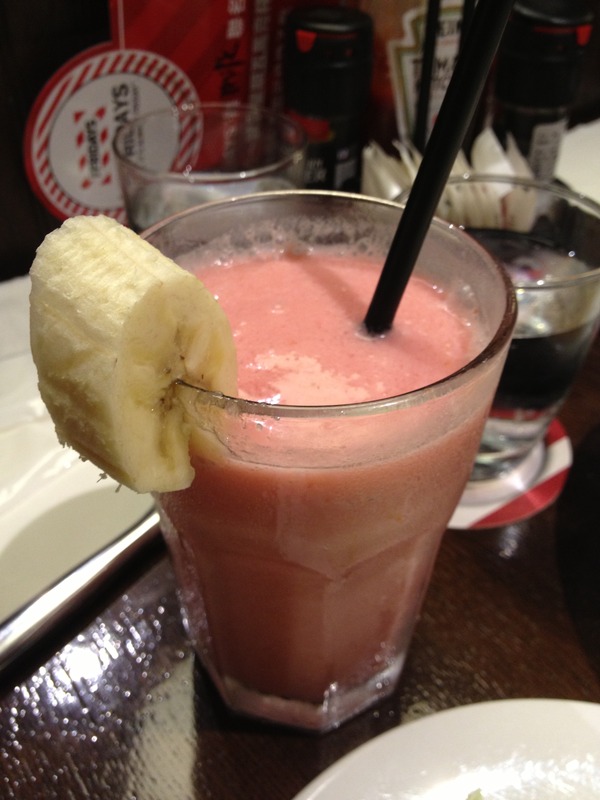 這是小v 點的也是經典絕配的,非酒精飲料,喝起來像香蕉草莓牛奶冰沙,好喝!! 我喜歡~~