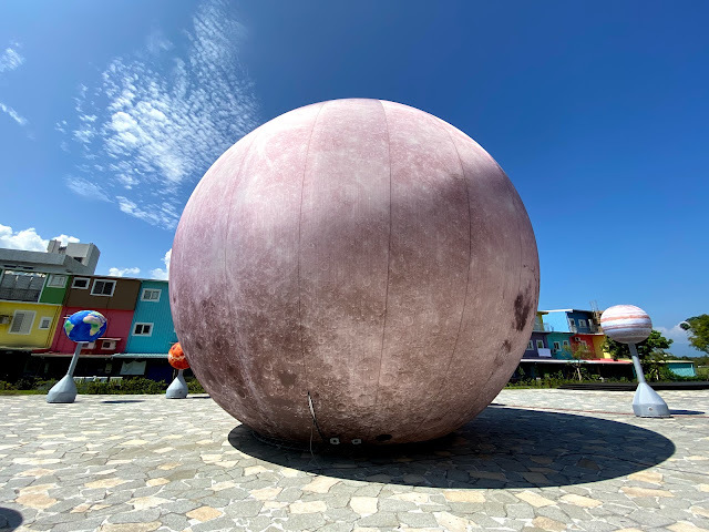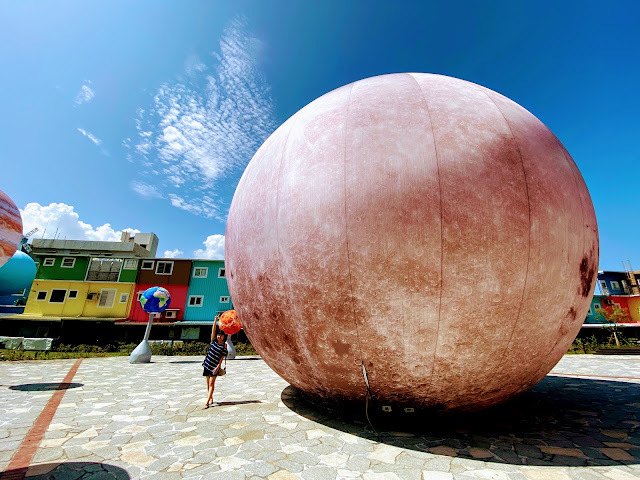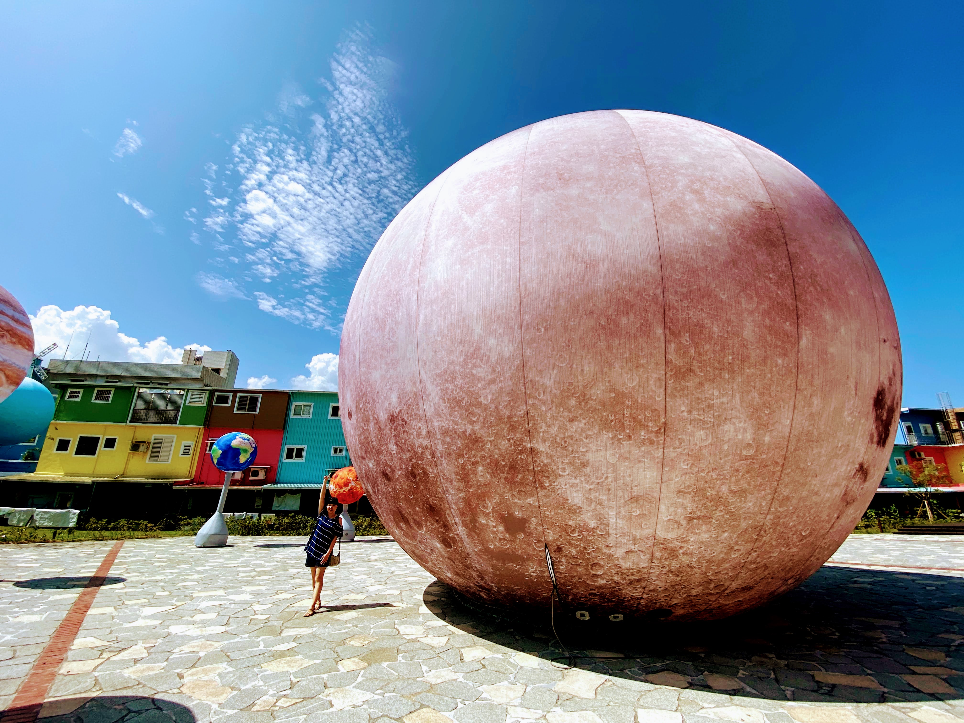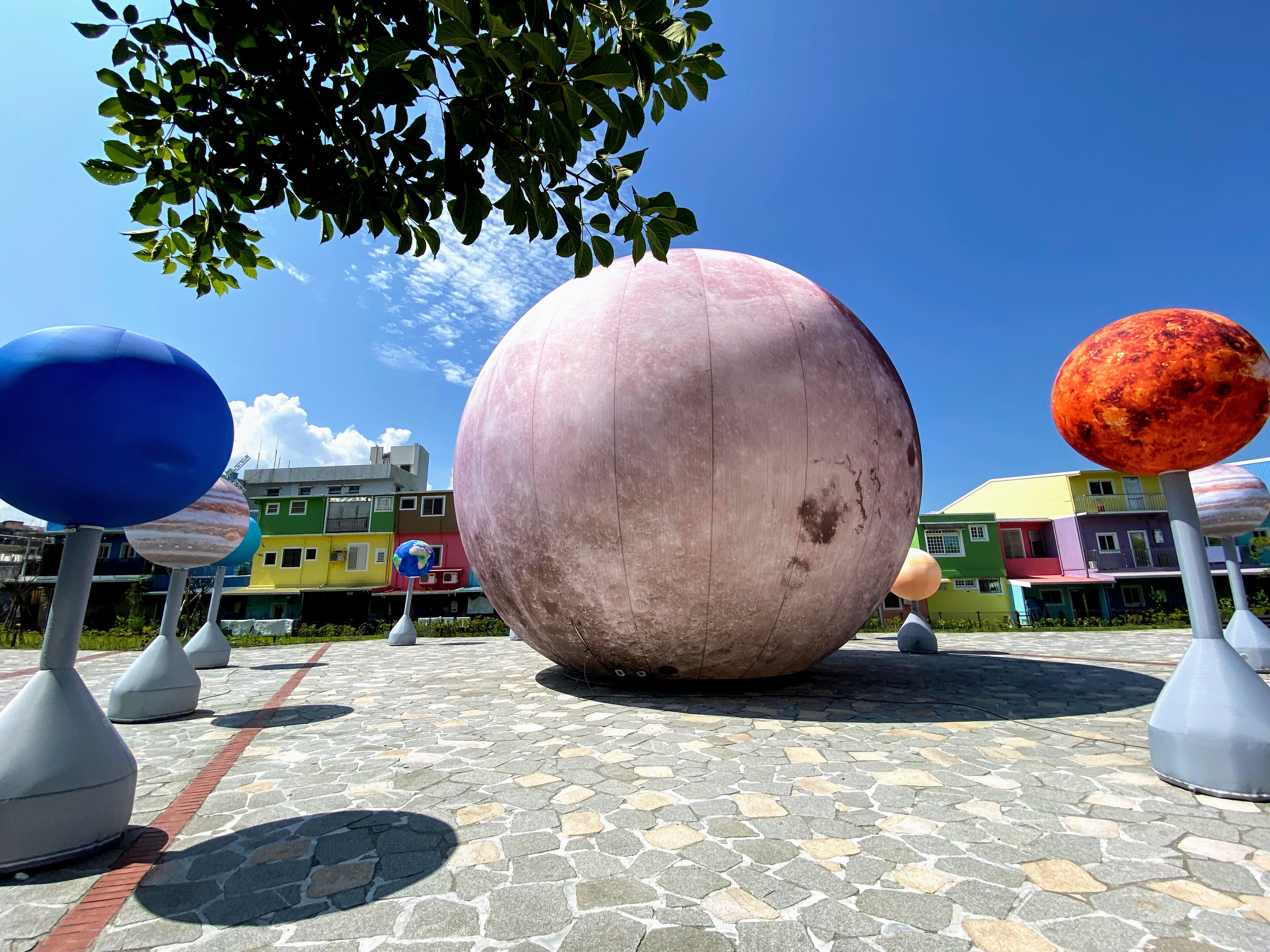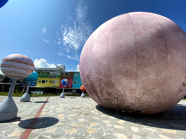 在巨型月亮及九大行星旁邊,有著媲美基隆正濱漁港的彩虹屋聚集,喜歡拍照的朋友們,可以到旁邊的木棧階梯上,擺上你最美的姿勢,東拍拍西拍拍,彩虹小屋不會讓你們失望的!繽紛多彩的彩虹屋,搭配上藍天白雲,包準你怎麼拍怎麼好看!