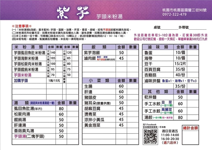 【紫芋芋頭米粉湯|完整菜單MENU】