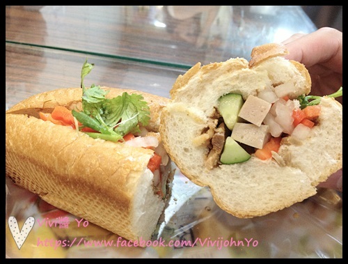Yo先生當天不餓,試試看他的輕食「越南三明治」,有炒豬肉、越南火腿、一些蔬菜...