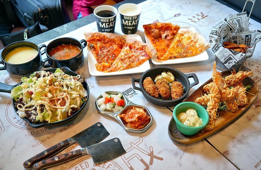 說到台中美食,這間「很牛炭燒牛排」絕對榜上有名,不僅在台北、中壢、竹北、南投、台中等地都有分店,而且光是台中就有三間門市,可見人氣多夯!這次我們享用的是崇德旗艦店,用餐環境帶點美式工業風,餐點選用頂級Prime美國安格斯牛肉,經過45天溼式熟成工法,再以430度直火炭烤,不僅能吃到炭味肉香,而且肉質軟嫩又大塊,牛肉控絕對要吃起來!不吃牛的朋友也有其他肉品選擇,此外還附有自助吧,有披薩、小菜、冷熱飲、冰淇淋通通讓你吃到飽,而且口味都不錯,吃完絕對飽到天靈蓋不誇張!