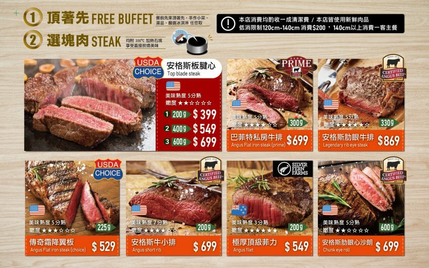 ▼不吃牛的話背面也有櫻桃鴨胸、伊比利豬梅花、松阪豬頸肉、炭烤雞腿排、德國豬腳等,選擇也不少!