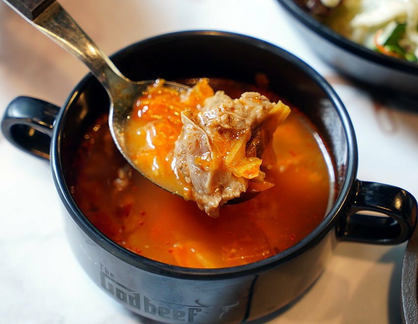 ▼羅宋湯,裡頭的牛肉是整塊的,吃起來香嫩軟Q,還帶點微黏口的膠質感,搭配酸香甘甜的湯頭很可以!