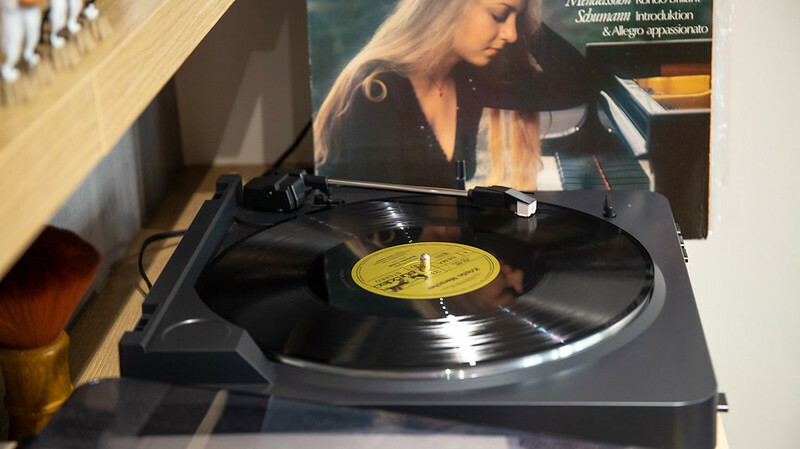 耳邊傳來黑膠唱片….這片聽完老闆就會過來再換一張聽”頑皮豹” 這樣俏皮的曲調下喝咖啡!