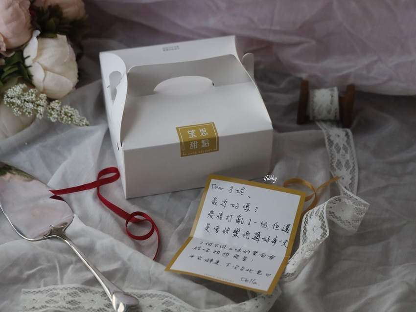雖然跟望思甜點的闆娘是舊識,但這次是透過LINE官方訂購,不確定對方接洽者是誰,因此收到蛋糕見到小卡片時,以為是產品介紹或是最佳食用說明之類的。