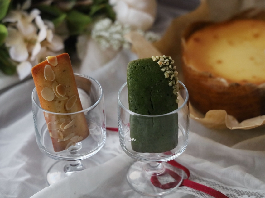費南雪口感鬆綿濕潤,且帶著焦香奶油芳香,杏仁的芳香及抹茶的淡雅,都令人愛不釋口。