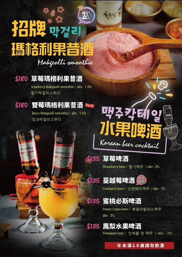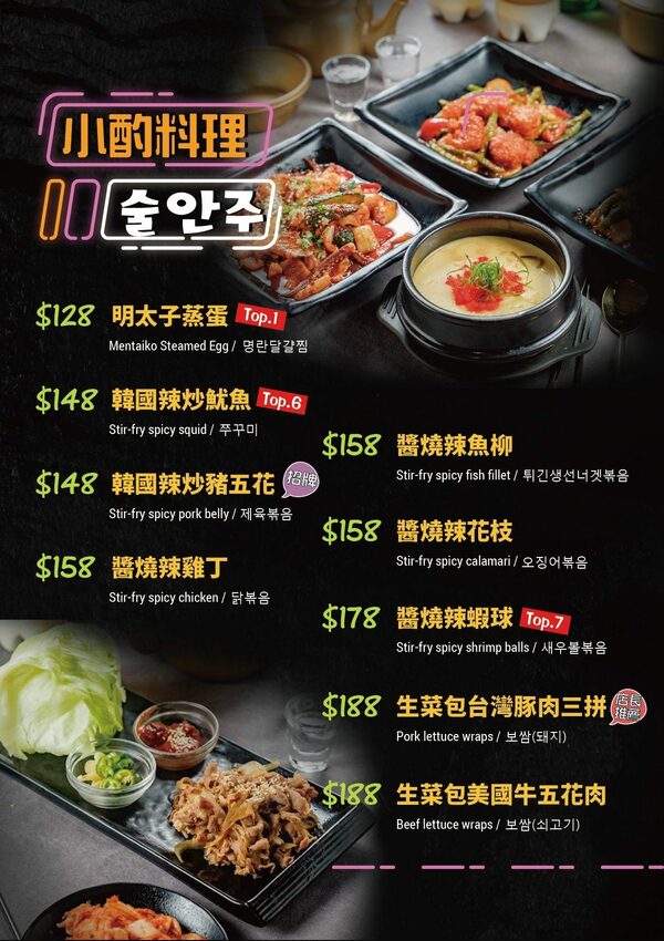 👉賓屋韓國小酒館(餐酒館)菜單目錄搶先看