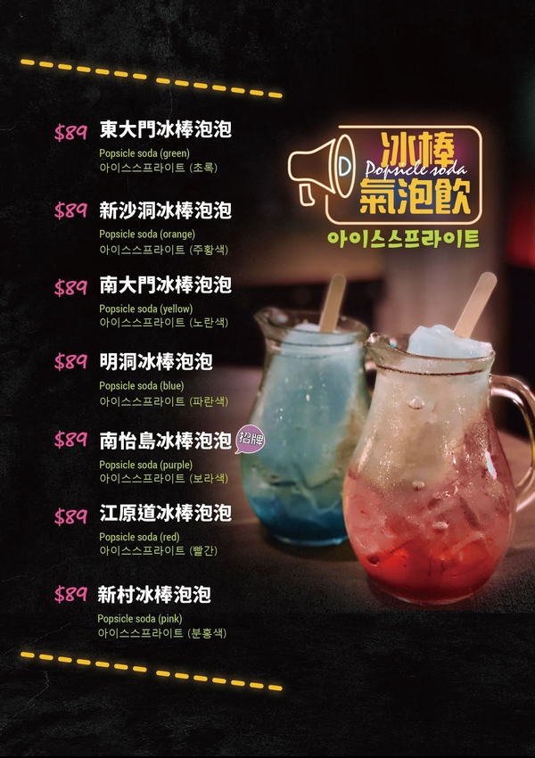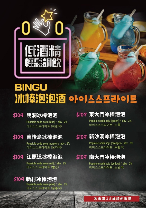 對了,這裡還有韓國很夯的冰棒泡泡,有無酒精或有酒精版,是不是很HIGH呢?