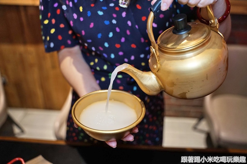 酒精味其實並不會重,甜甜的米酒很順易入口,我們今天喝的是水蜜桃瑪格利米酒(180元),甜甜的帶點微酒精米甜很適合大家一起分享。