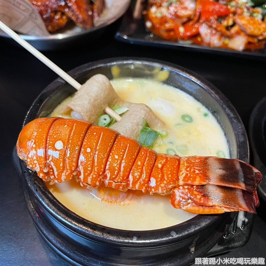 這鍋是很超值的頂級龍蝦嫩豆腐鍋(限量)只要399元,另外還有搭配一份石鍋飯,一個人吃完也挺飽了XD