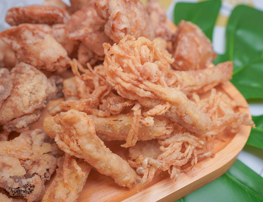 酥炸綜合菇就是菇菇大集合,杏鮑菇紮實爆汁很美味、秀珍菇香脆味美、金針菇酥酥脆脆,3種口感不同,一次3種滿足,搭配調味粉選擇也很多,變化出多種口味。