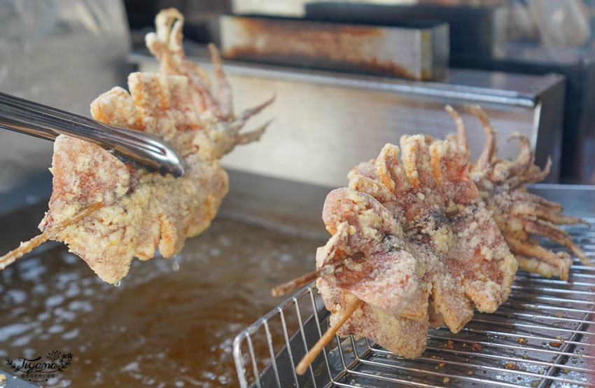 剛好老闆正在裏粉現炸,熱呼呼炸出爐,每隻酥炸大魷魚不誇張都比緹緹(女兒)的臉大,不過比我胖臉還小就是了…哈哈哈。