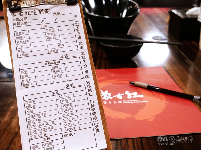 一次限點8樣食材,每樣限制3份,用餐時間為110分鐘還算充裕。