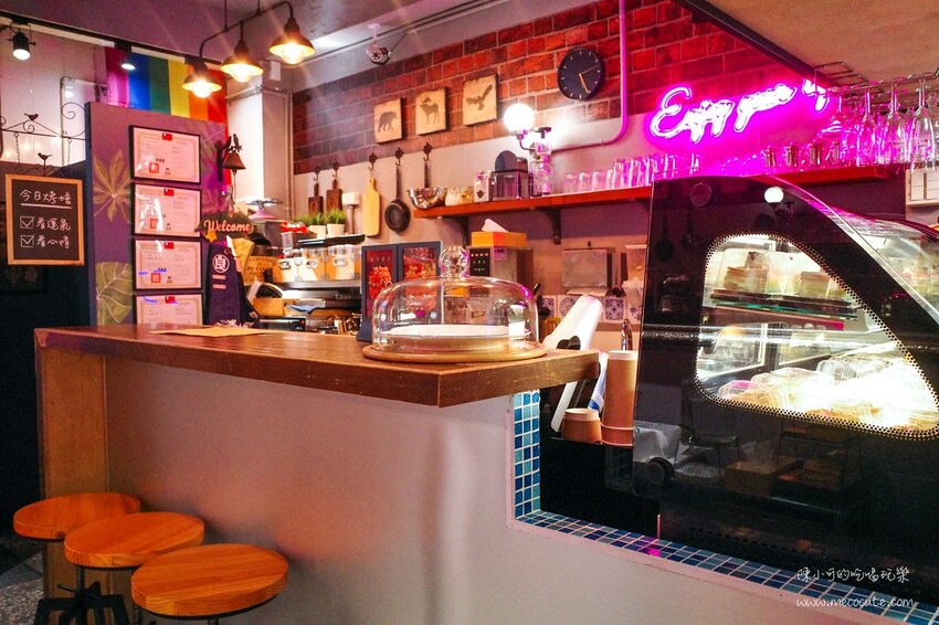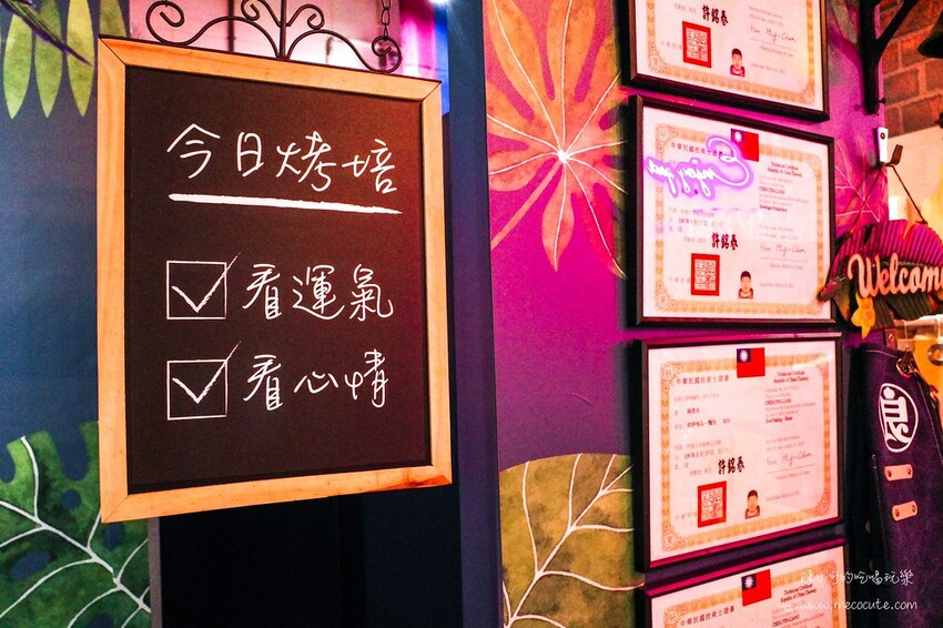 老闆除了是設計師,還擁有五張烘焙證照,店內的甜點蛋糕都是他的手藝,想吃什麼要看老闆心情和看運氣,很可愛的小立牌。