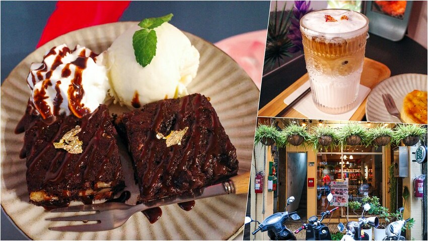 我點了玫瑰拿鐵咖啡、鹹配和布朗尼蛋糕,甜點和鹹食的價格都不貴呢!