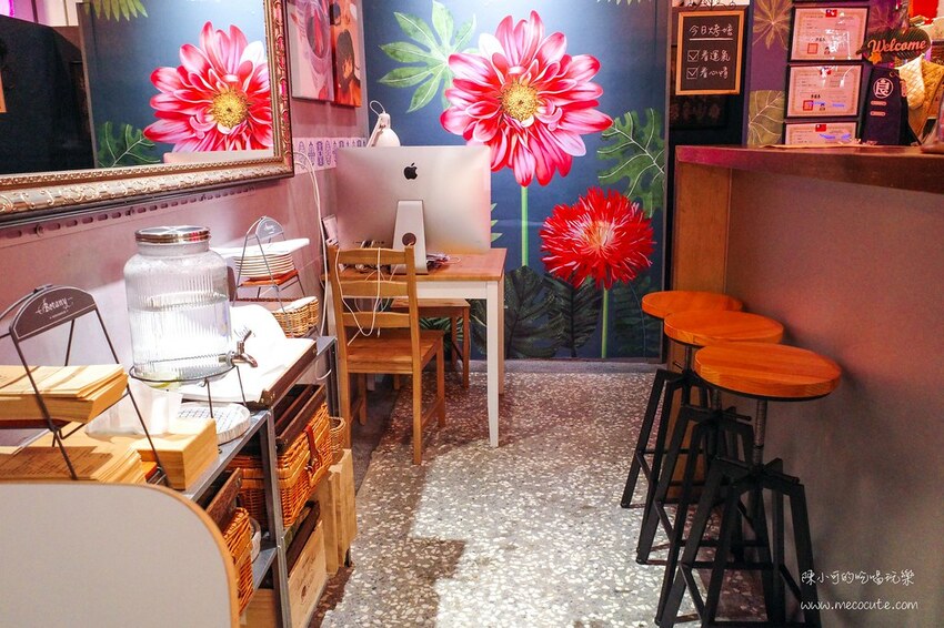 懷舊的磨石子地板搭配霓虹燈光,牆面以花朵、紅鶴壁貼打造網美拍照風格,即使空間不大,老闆也善加利用每個角落,營造讓人放鬆的舒適感。