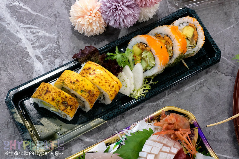 這盒壽司卷也是什麼都有啦!如果今天去露營這盤應該馬上就會被搶光了吧XD 大朋友小朋友都很適合。花壽司、海苔壽司、黃瓜細卷以及豆皮壽司