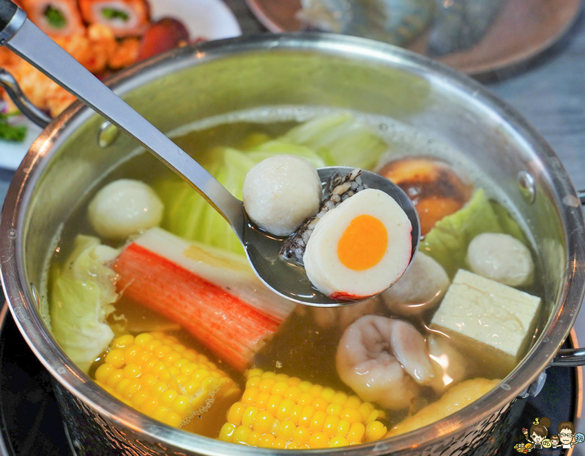 鍋物有柴魚昆布、麻辣湯頭兩種可選,我們挑選昆布湯,清甜湯頭,適合熬煮海鮮、蔬菜唷!