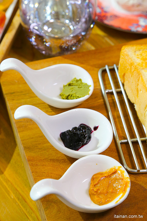 值得一提的是抹醬都是店家自己自製的,花生、抹茶、藍莓三種風味都很獨創,尤其我最愛他們的抹茶,是帶點奶香的抹茶牛奶味,少掉強烈的抹茶單調韻味,而是更柔和更富有層次的味道。