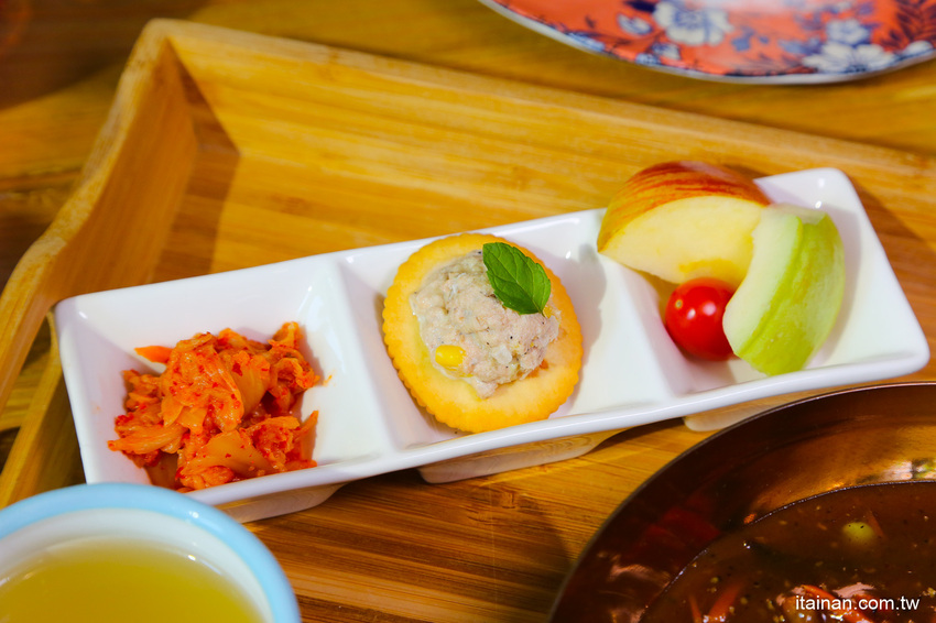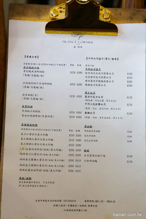 雖然是十足歐式風格的店,但是在餐點上也不乏有著台南味的鍋燒系列,是以每日新鮮熬煮的湯頭搭配大干貝、大草蝦製作而成。讓來到店內的遊客可以直接就享用到台南味