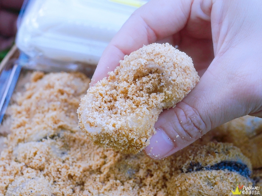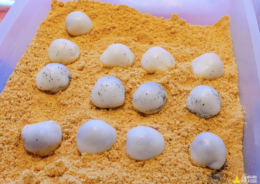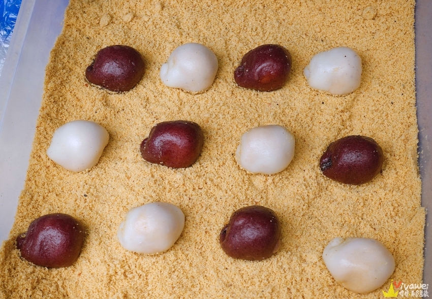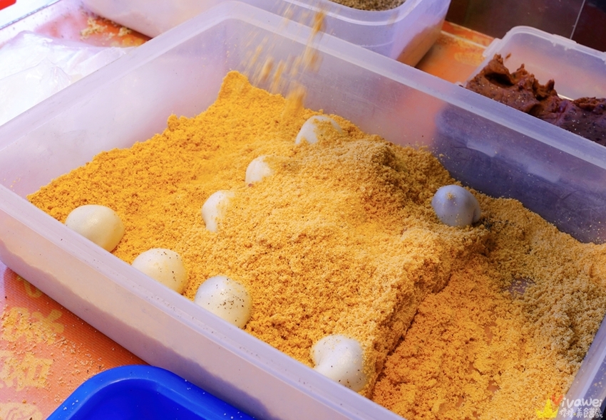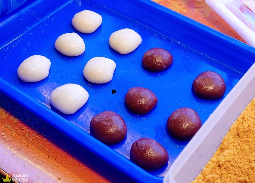 ▲圓滾滾的麻糬準備裹上花生粉囉!排隊的時候看著老闆親手包麻糬的過程✌ 老闆的手速超快~非常俐落!幾秒鐘就包好一顆!