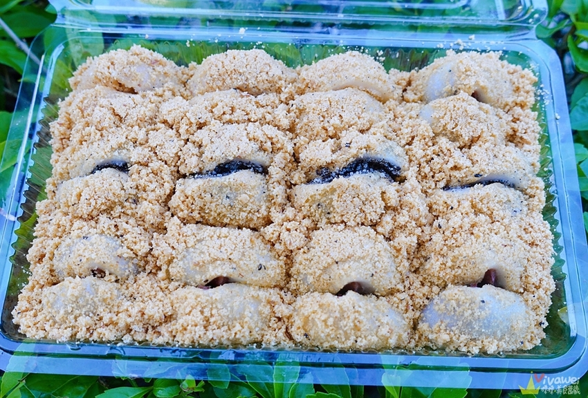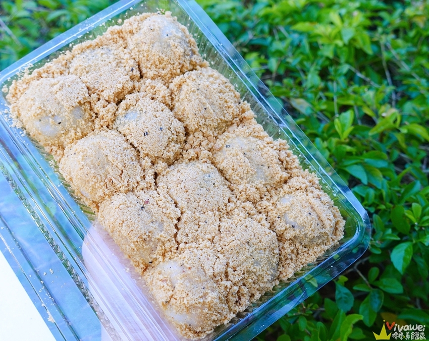 ▲滾好無糖的花生粉的麻糬,一顆顆放入透明盒子裡,可以看到每一顆麻糬都有均勻沾附花生粉!如果想要多一點的花生粉~也可以請老闆另外幫你包唷!