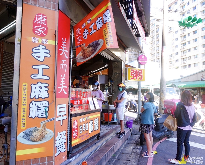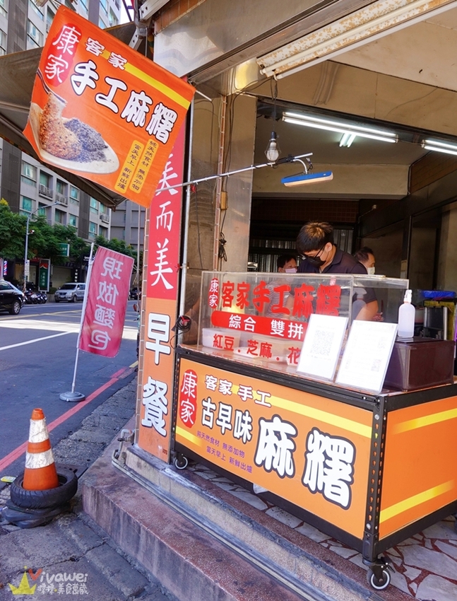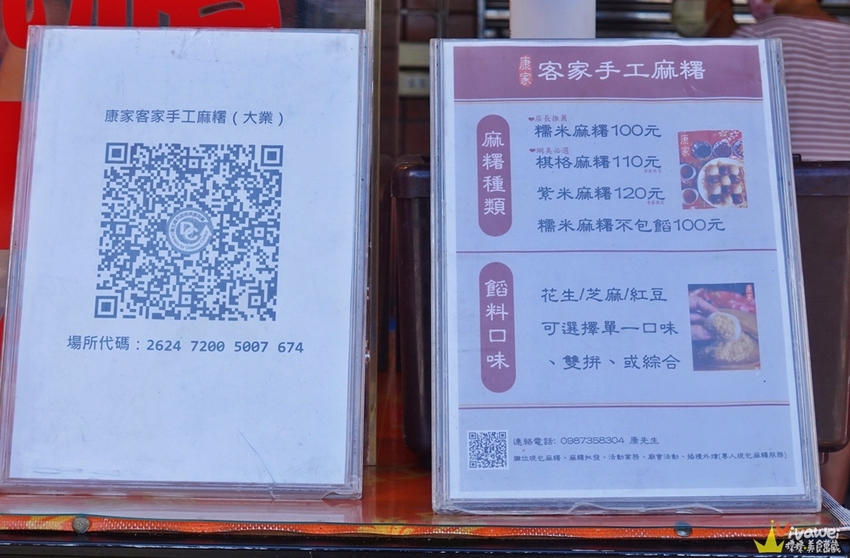 ▲「康家客家手工麻糬-大業總店」固定就在這個三角窗口擺攤~每週二至週日的14:30-20:30營業~每週一為公休日!如果提早賣完也會提早收攤~想吃請早~~~