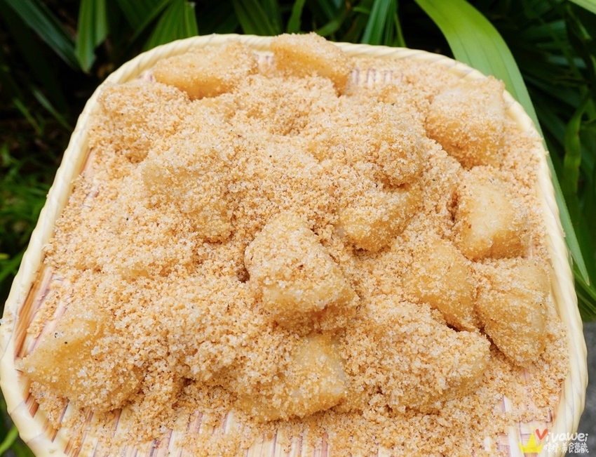 ▲先將花生粉撲在底部~上面再放上一大塊的麻糬~這時候再用筷子把他分成小塊就OK!因為這樣的麻糬比較費工~老闆說現在的人都比較愛買包好的~哈哈~但我自己更愛這樣的客家傳統麻糬阿~