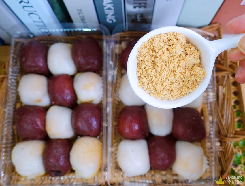 ▲將棋格麻糬的花生粉另外裝~等拍完照想吃的時候再加上去!紫米麻糬的口感比較紮實一些~有淡淡的紫米香氣~而糯米麻糬比較Q彈~兩款各有特色😋