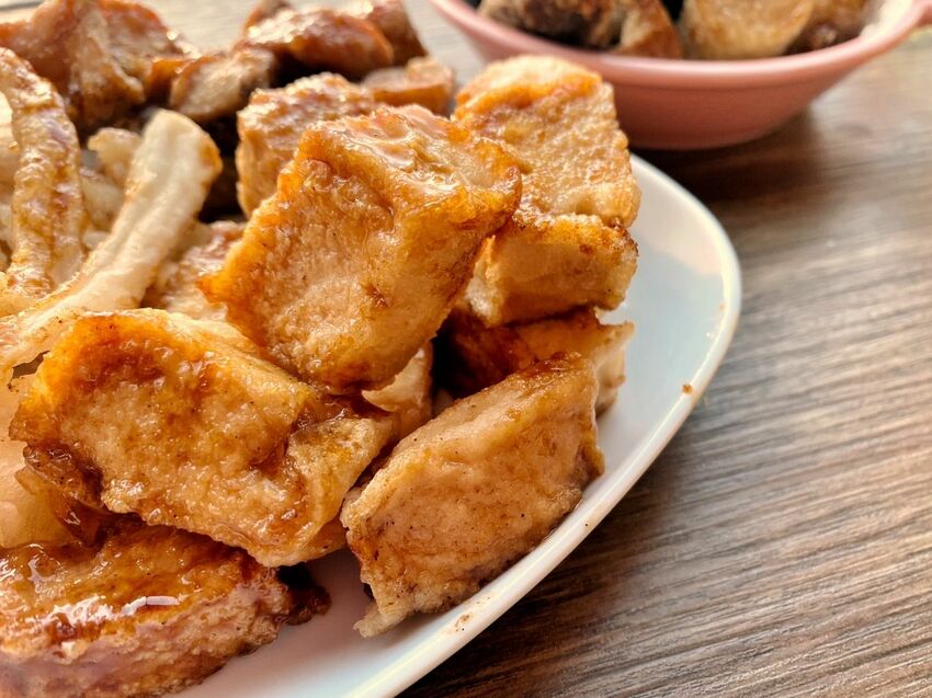 一般的炸米血,要麻很黏、要麻很硬,冷掉後更是大家不想吃的一道,但小彤帽的炸米血,根本不硬也不黏,反而很好咬斷,咬下去吃的一顆顆層層口感,冷掉後口感一樣軟軟的好吃,完全不硬,同事們吃了也是很驚艷!