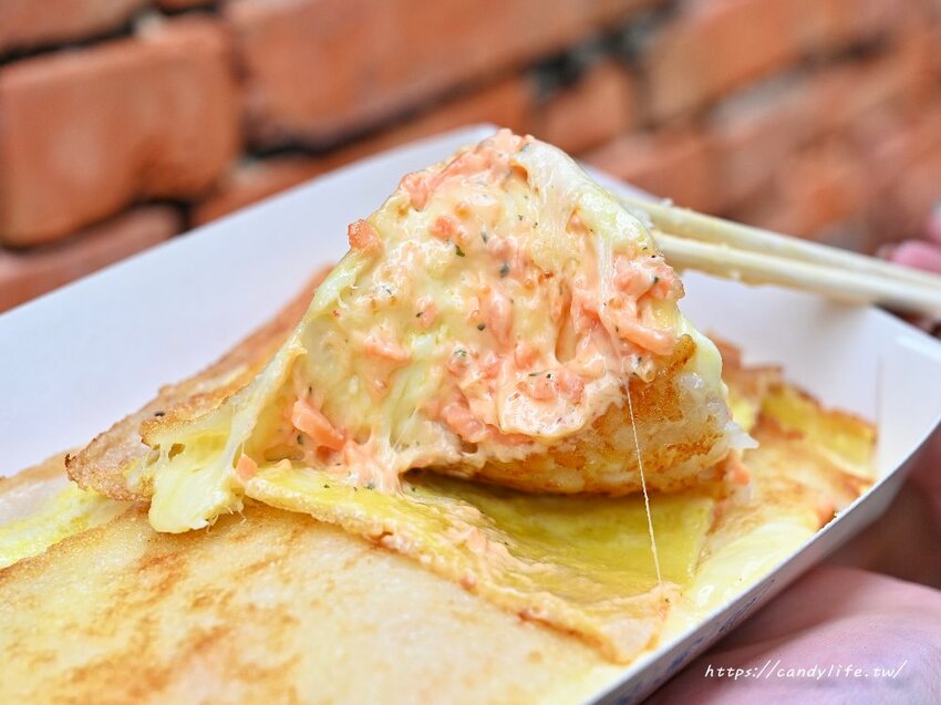另一個手工起司餅糖糖加了龍蝦沙拉,將起司餅翻開,裡頭不只起司還有滿滿的龍蝦沙拉,一口咬下去,內餡可是會大爆漿!