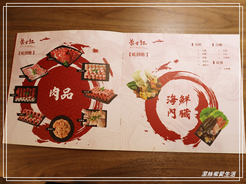 我們一行四人開2鍋,都是鴛鴦鍋型式,蒙古紅有三種湯底,麻辣紅鍋/原味白鍋/清甜甘蔗鍋,當然每種都要來嚐試一番。