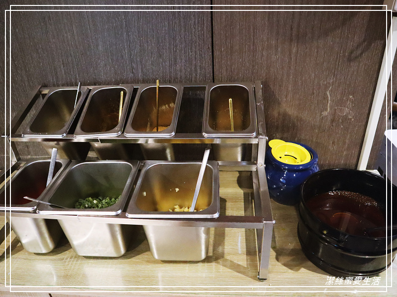 雖然真心覺得已經不用沾醬,不過店家仍然準備了蔥/蒜/沙茶醬等,連雞蛋和蛋黃分離器都一應俱全,好貼心~真的有需要的再來自取。