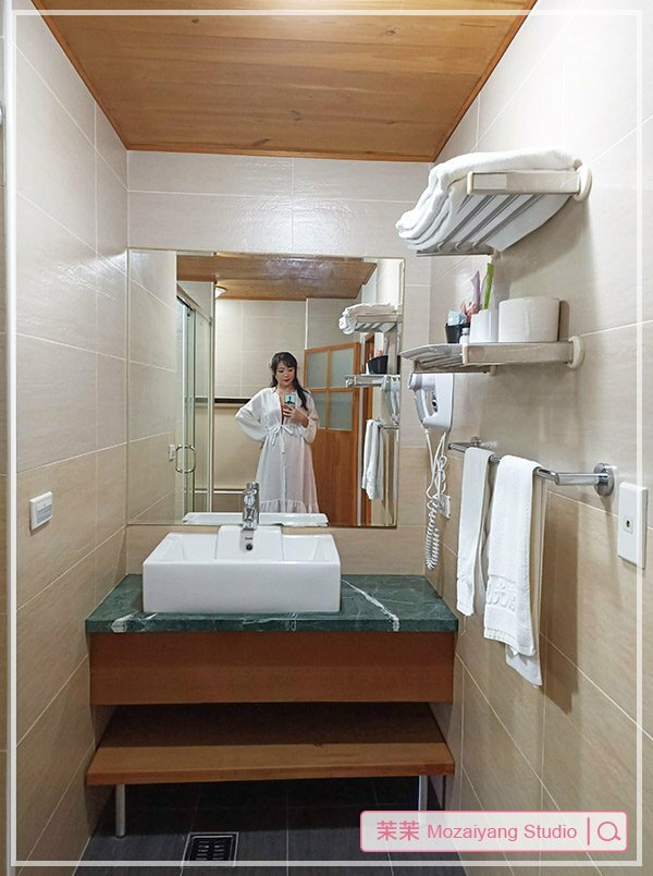 ▼裡面有木桶可以泡澡,窗外景緻也不錯。