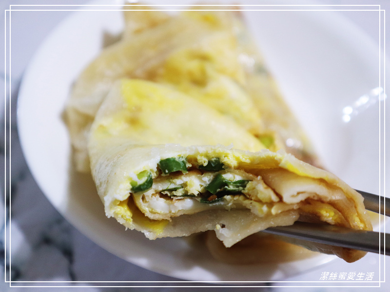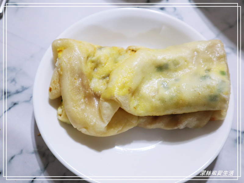 蛋餅也是很推薦哦!30元的價格這樣一大片CP值很高,這是兩條重疊的量呢~當然優點也不只是份量,餅皮頗有Q勁,我蠻愛這口感的,新鮮蔥蛋很香,強烈建議一定要加辣呀~