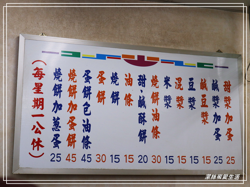 價格都還蠻親切,燒餅和蛋餅是必點,至於甜鹹酥餅我跑了兩次都沒買到XD,這真的要一大早,我七點多來早就售罄😓😓。