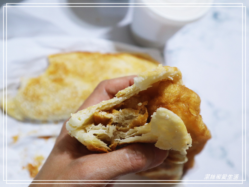 最傳統的搭配,也最萬年不敗,燒餅酥香,咬入嘴裡融合了麵皮與芝麻香氣,油條酥脆吃起來不膩口,雖然一邊吃一邊掉有點辛苦XD,但就是一口接一口停不下來呀😆。