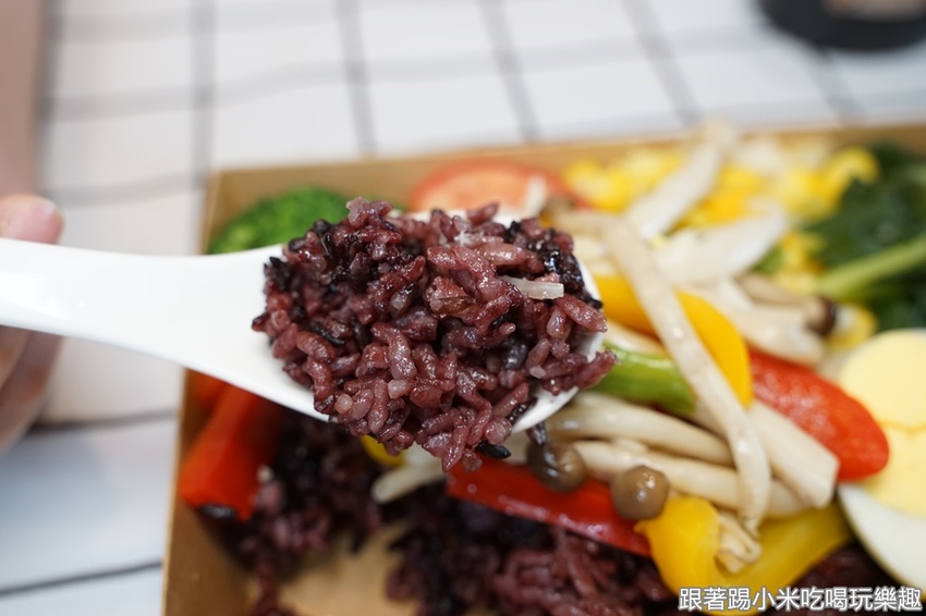 餐盒配的米飯可以選健康紅藜麥飯或紫米飯 ,也可以+60元換花椰菜米,如果不想吃澱粉類的女士們可以+20元換成生菜唷