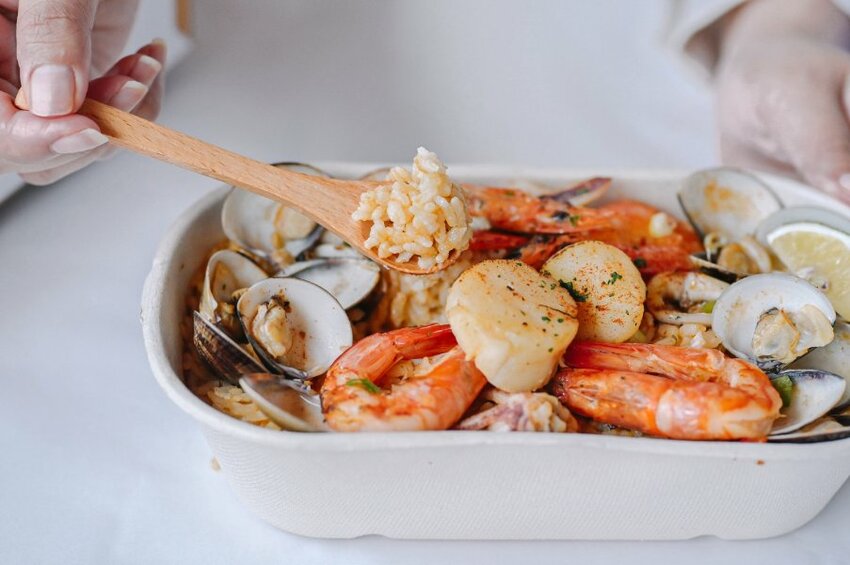 使用台農 71 號香米,米粒吸收了海鮮高湯精華,軟糯鮮美,分量實在,真的很夠兩個人吃。